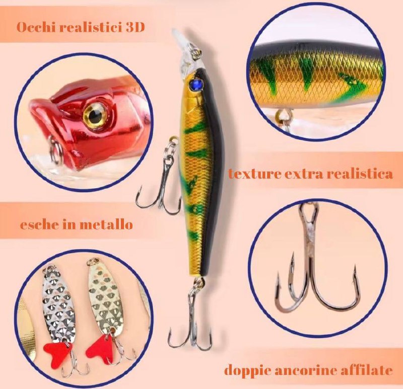 l'ho comprato per mio marito che ama pescare e gli è stra piaciuto. Esche ben fatte , regalo super originale.
